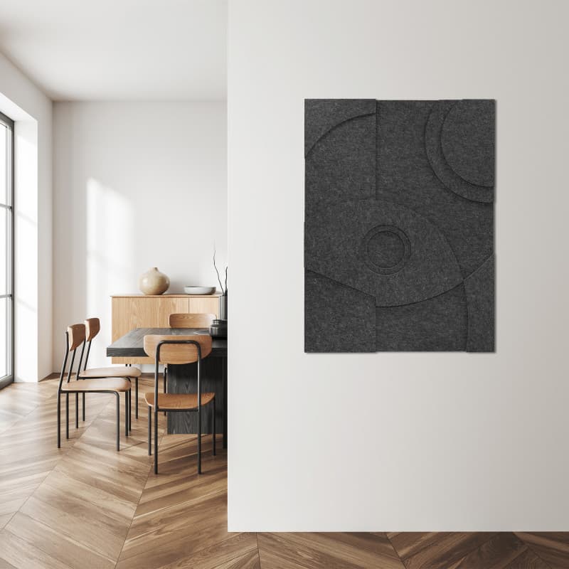 Prachtige vilten wanddecoratie geproduceerd in Nederland. Het akoestische kunstwerk bestaat uit 2 lagen vilt en is verkrijgbaar in 13 kleuren. Specificaties: Afmeting: 800x600 mm Opgebouwd uit gerecycled PET materiaal Verkrijgbaar in 13 verschillende kleuren PET-vilt is een duurzaam materiaal, gemaakt van 60% gerecyclede PET-flessen en volledig recyclebaar. Het materiaal heeft uitstekende akoestische eigenschappen, waardoor de akoestiek in uw ruimte verbeterd. Voordelen: Herkomst Nederland 100% recyclebaar Licht in gewicht Akoestisch materiaal Prachtige kleuren