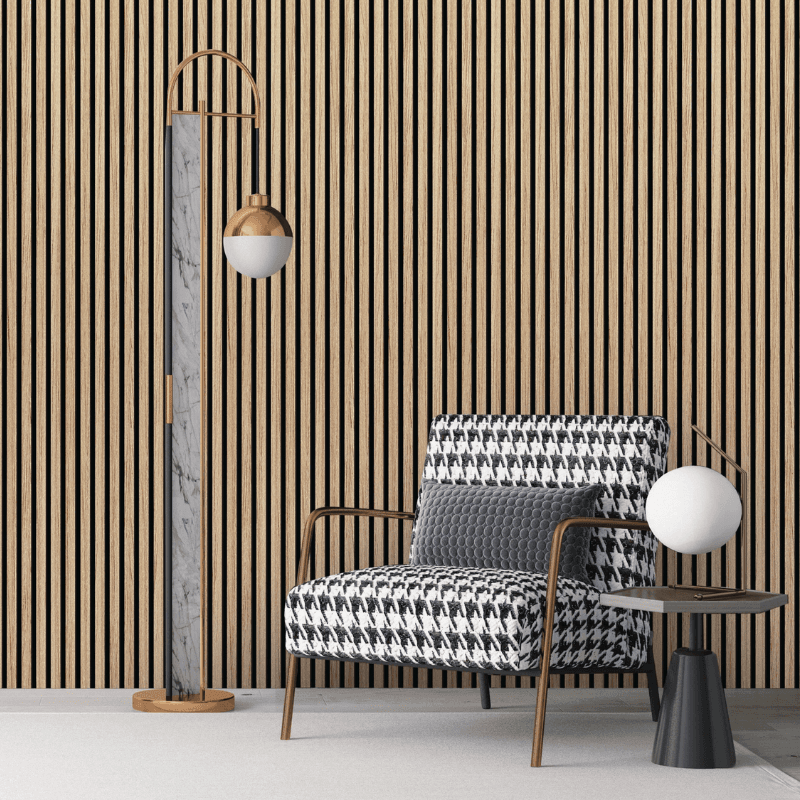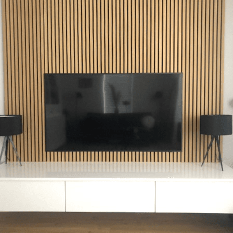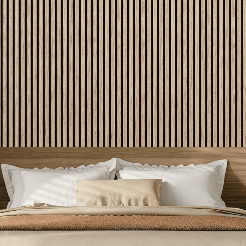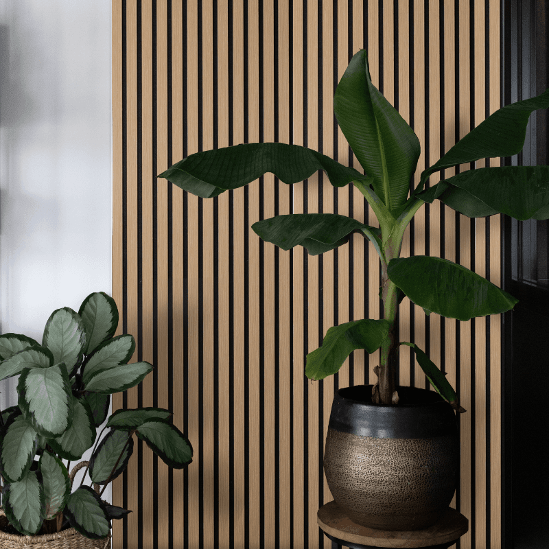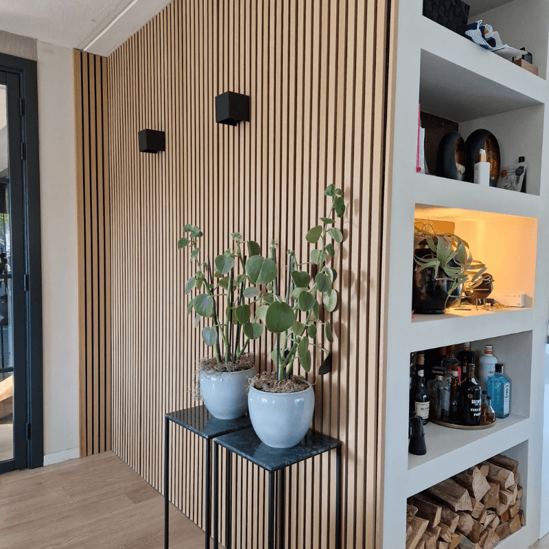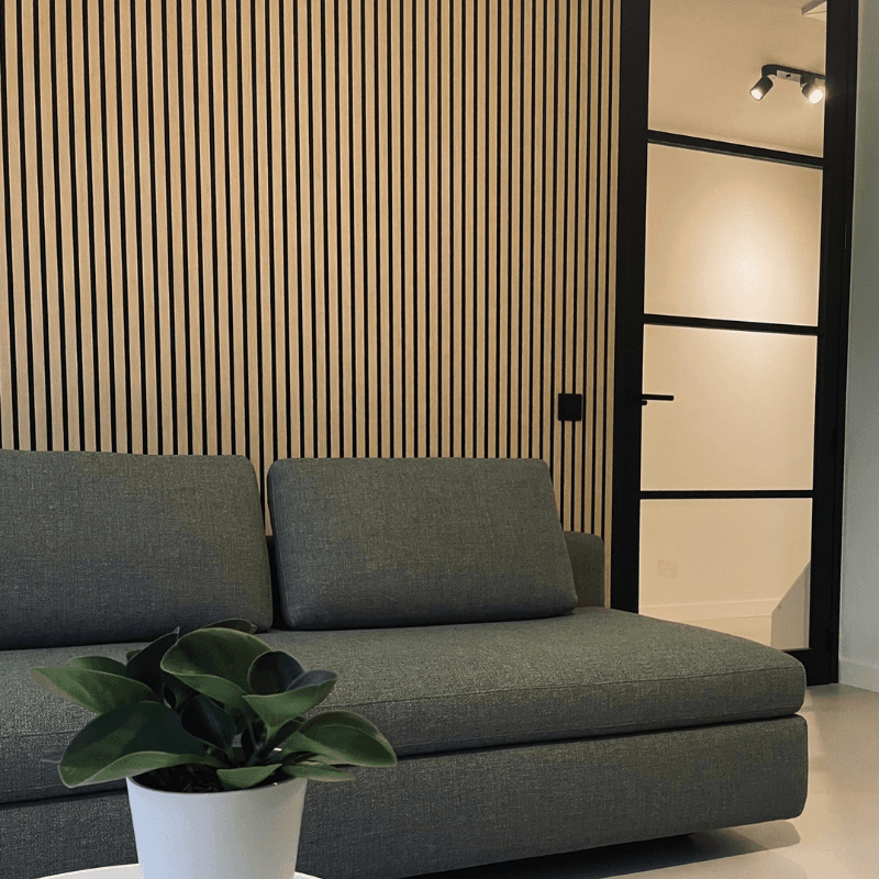 Onze stijlvolle akupanels zijn de perfecte keuze om elke ruimte een luxueuze en moderne uitstraling te geven. Deze hoogwaardige wandpanelen zijn samengesteld uit een achterzijde van zwart PET-vilt voor optimale geluidsdemping, gecombineerd met MDF-latjes bekleed met een prachtig eikenhoutfineer. Ze voegen niet alleen esthetische waarde toe, maar verbeteren ook de akoestiek in je woning of werkruimte. Hun veelzijdigheid en tijdloze design maken ze geschikt voor elk type ruimte, of het nu gaat om een woonkamer, kantoor of restaurant. Creëer een warme, rustige en verfijnde sfeer met onze zwarte akupanels en geef je interieur een stijlvolle upgrade.